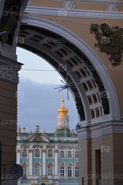 Санкт-Петербург: Вид на Эрмитаж (Зимний Дворец) через арку Главного штаба