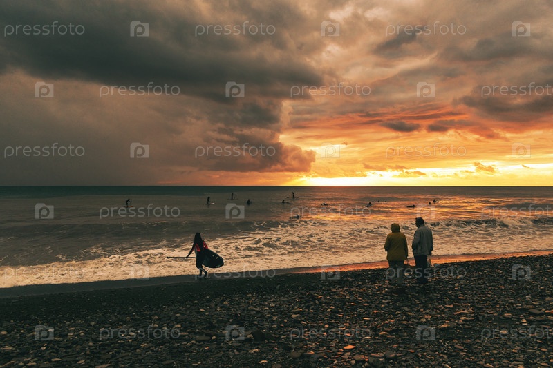 Пара гуляет по пляжу