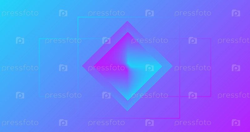 Абстрактный современный прямоугольный фон с ромбом в центре, тонкими прямоугольниками, сине-фиолетово-розовым градиентом