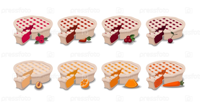 Набор пирогов с фруктами, оранжевой тыквой, абрикосовыми ягодами, вишней, малиной, клубникой