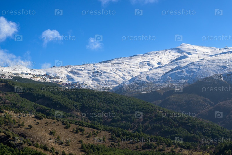 Лыжные склоны горнолыжного курорта Прадольяно в горах Сьерра-Невада в Испании