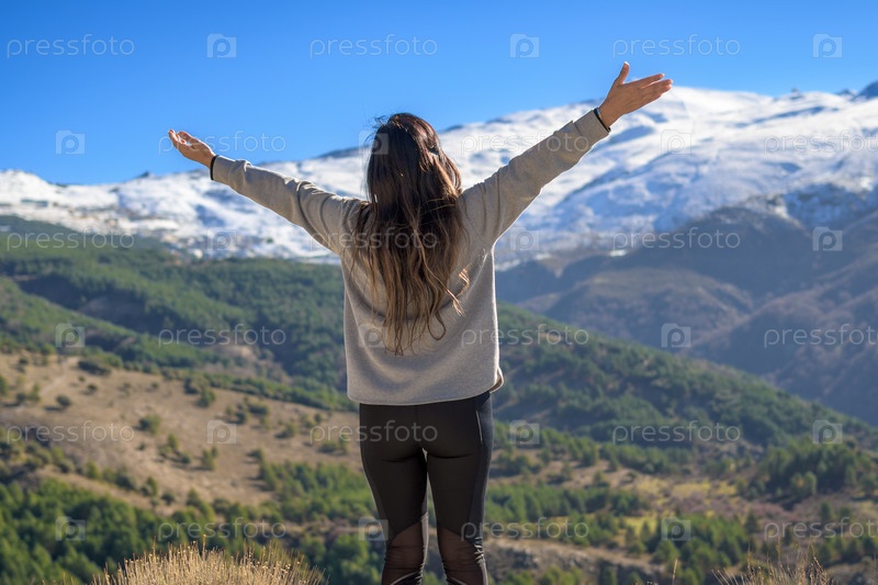 Латиноамериканка раскрывает руки, наслаждаясь свободой. у нее есть спина,