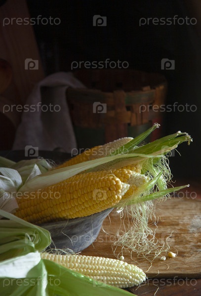 Свежие кукурузные початки в сдержанной обстановке