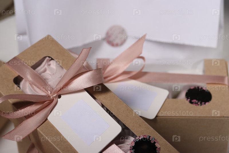 Зефирные цветы. Коробки домашнего зефира. Крафтовая упаковка, перевязанная лентой. Поля имеют метки с текстовым полем