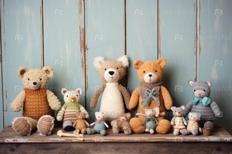 Коллекция игрушек ручной работы. трикотажные изделия, валяные животные из шерсти и хлопка