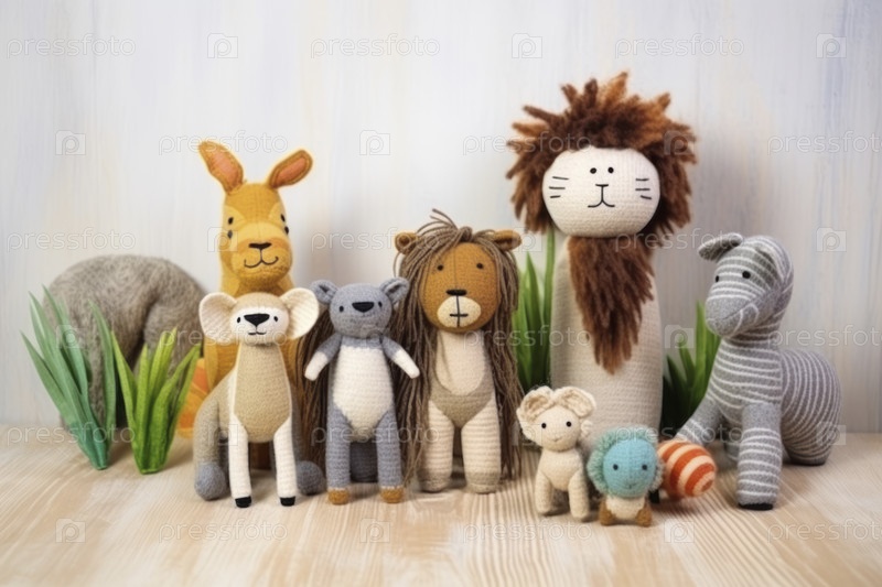 Коллекция игрушек ручной работы. трикотажные изделия, валяные животные из шерсти и хлопка