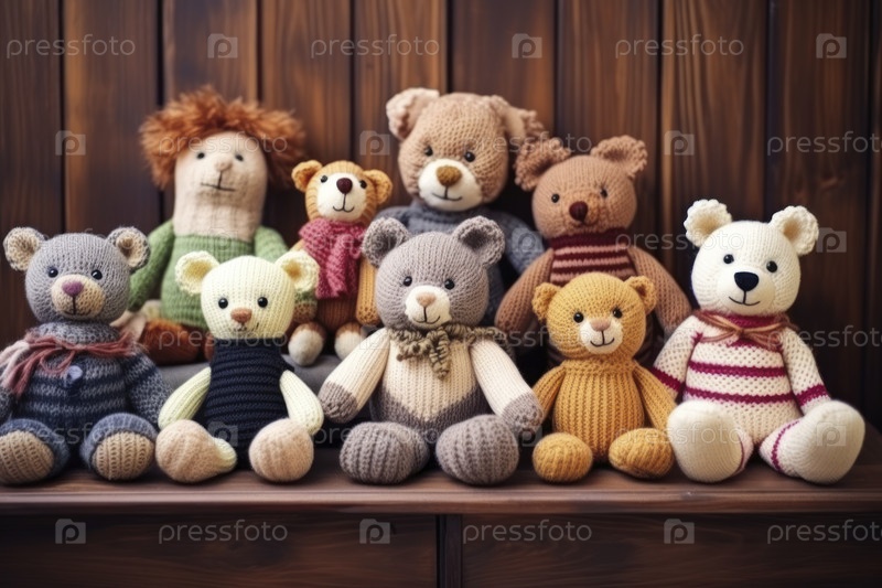 Коллекция игрушек ручной работы. трикотажные изделия, валяные животные из шерсти и хлопка