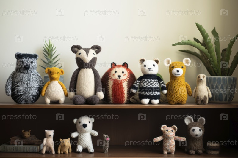 Коллекция игрушек ручной работы. трикотажные изделия, валяные животные из шерсти и хлопка
