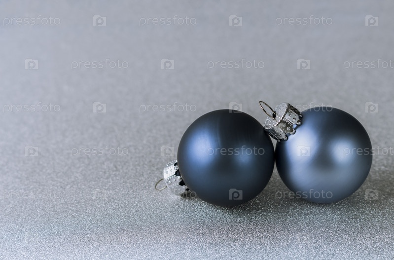 Два синих новогодних шарика на серебряном фоне. Концепция Нового года