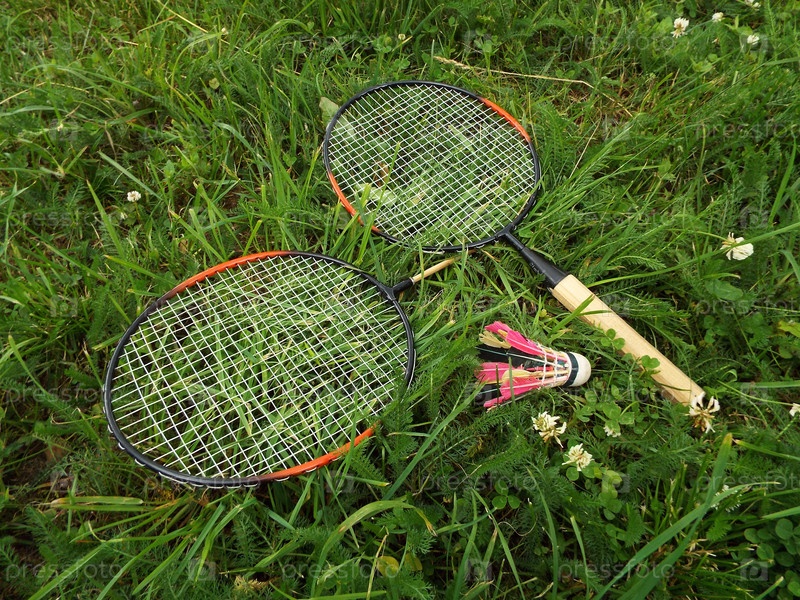 Бадминтон, ракетки с воланчиком на траве