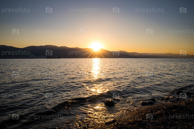 Восход солнца на море из-за гор
