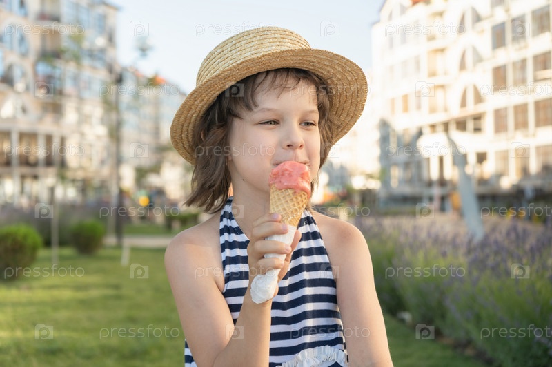 Девушка ест мороженое