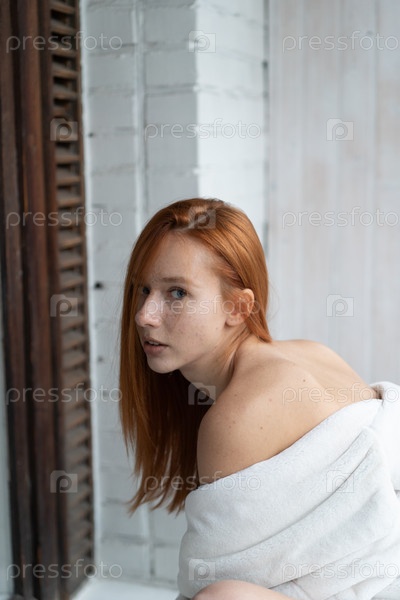 Портрет молодой красивой женщины с рыжими волосами возле окна
