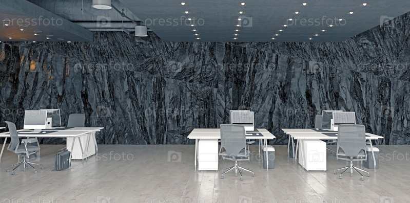 Современный офисный интерьер с элементами рока. 3D-рендеринг