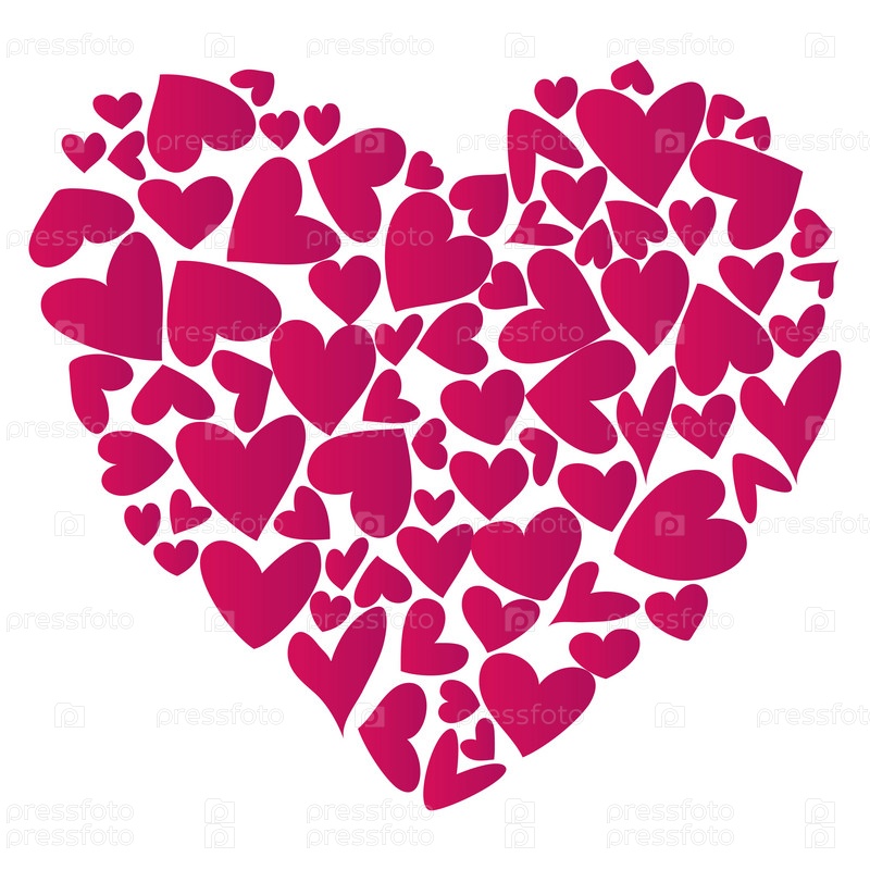 Сердце, символ любви и Дня святого Валентина. Большое сердце из маленьких розовых сердечек. Векторная иллюстрация