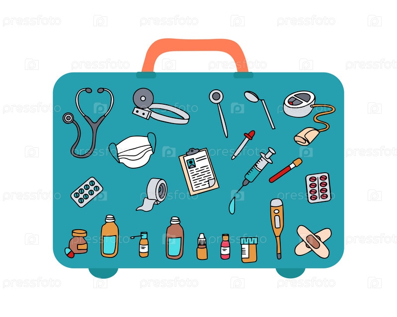 Медицинские рисунки ручной работы. Здравоохранение, аптека, коллекция медицинских икон. Векторная иллюстрация