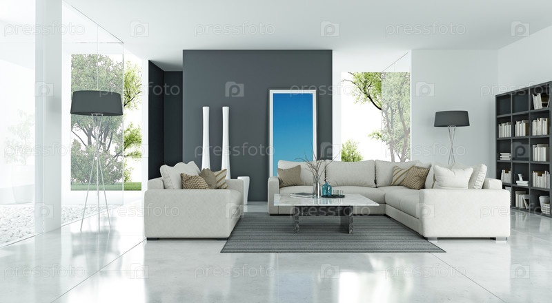 3D-иллюстрация современного интерьера квартиры