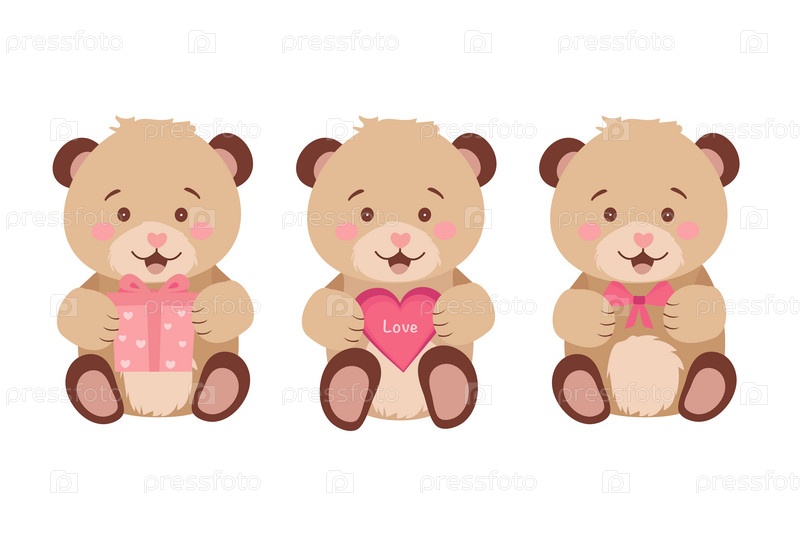 Симпатичные плюшевые мишки. Рисунок ко Дню святого Валентина, Дню мишки Тедди. Векторная иллюстрация. Вектор