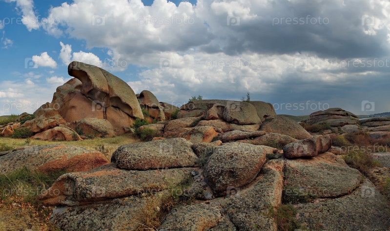 Восточный Казахстан. Живописный вид на каменные останцы горного природного парка Баянаул, расположенного посреди бескрайних степей