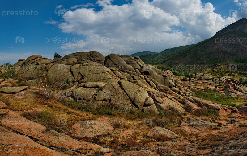 Восточный Казахстан. Живописный вид на каменные останцы горного природного парка Баянаул, расположенного посреди бескрайних степей