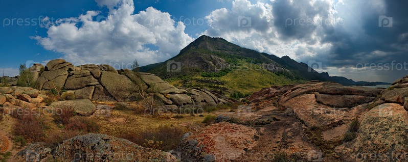 Восточный Казахстан. Живописный вид на каменные останцы горного природного парка Баянаул, расположенного посреди бескрайних степей