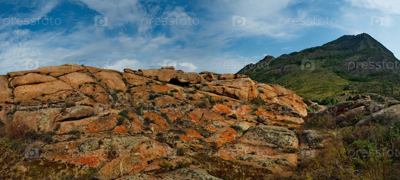 Восточный Казахстан. Живописный вид на каменные останцы горного природного парка Баянаул, расположенного посреди бескрайних степей