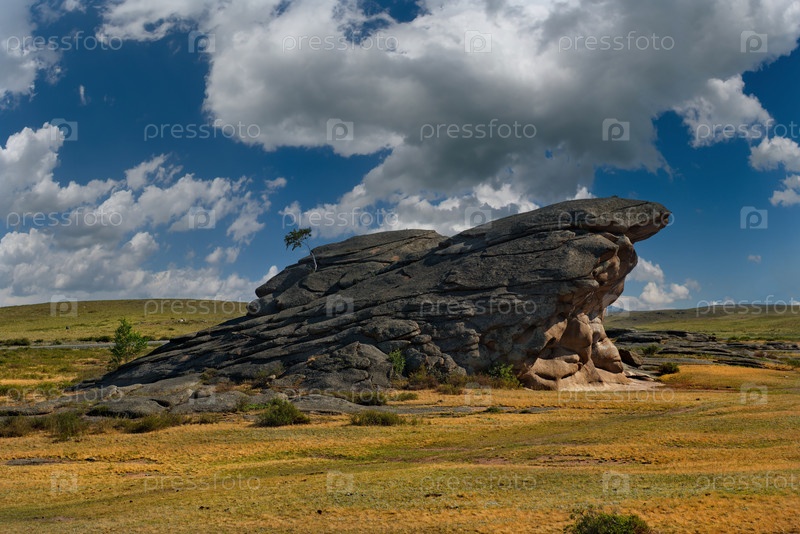 Восточный Казахстан. Живописный вид на каменные останцы горного природного парка Баянаул, расположенного посреди бескрайних степей