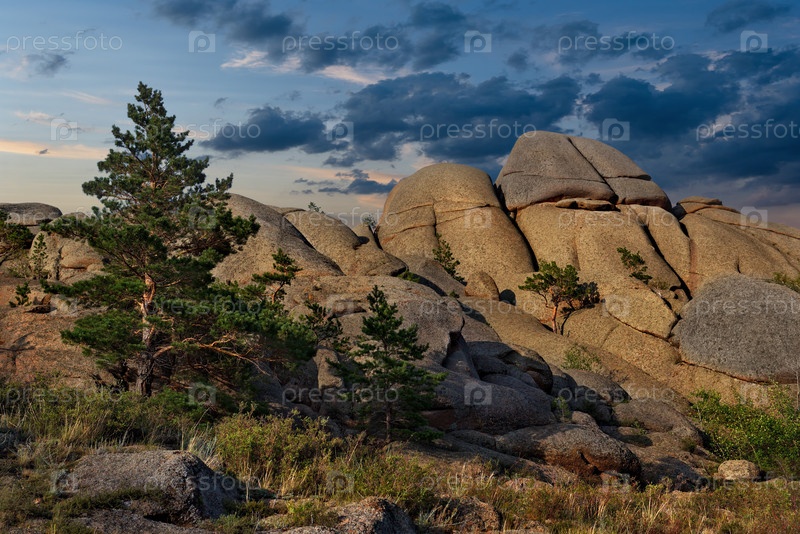 Восточный Казахстан. Живописный вид на каменные останцы горного природного парка Баянаул, расположенного посреди бескрайних степей