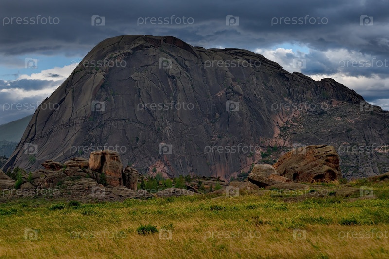 Восточный Казахстан. Живописный вид на каменные останцы горного природного парка Баянаул, расположенного посреди бескрайних степей
