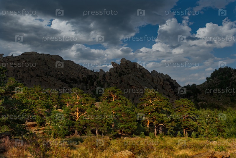 Восточный Казахстан. Живописный вид на каменные останцы горного природного парка Баянаул, расположенного посреди бескрайних степей