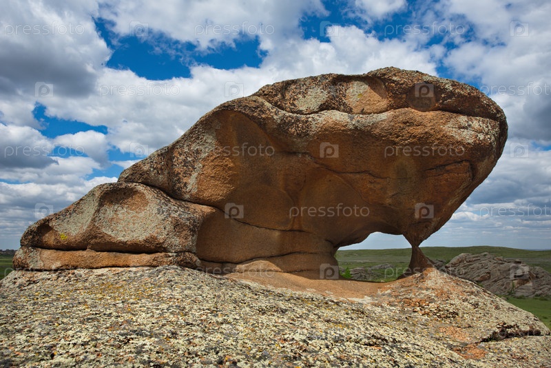 Восточный Казахстан. Живописный вид на каменные останцы горного природного парка Баянаул, расположенного посреди бескрайних степей