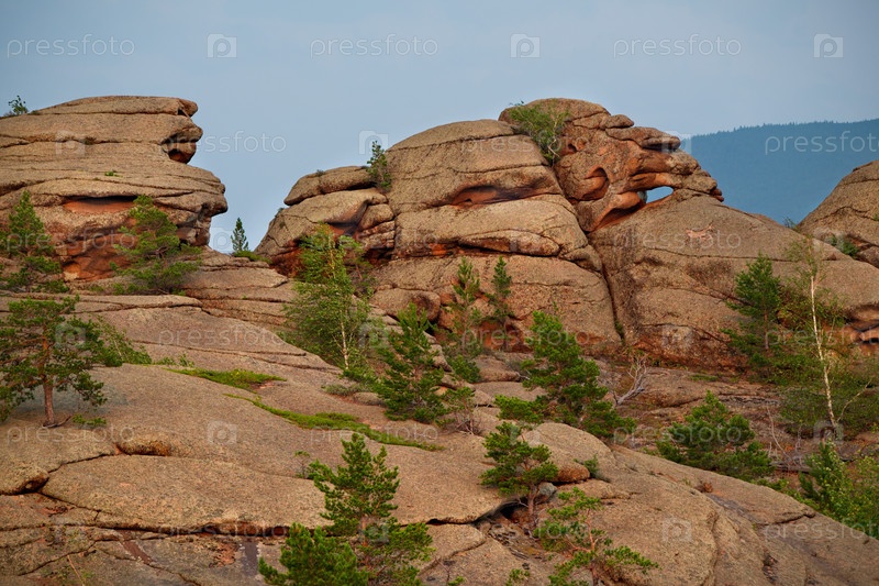 Восточный Казахстан. Живописный вид на каменные останцы горного природного парка Баянаул, расположенного посреди бескрайних степей