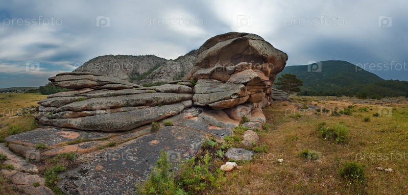 Восточный Казахстан. Живописный вид на каменные останцы горного природного парка Баянаул, расположенного посреди бескрайних степей