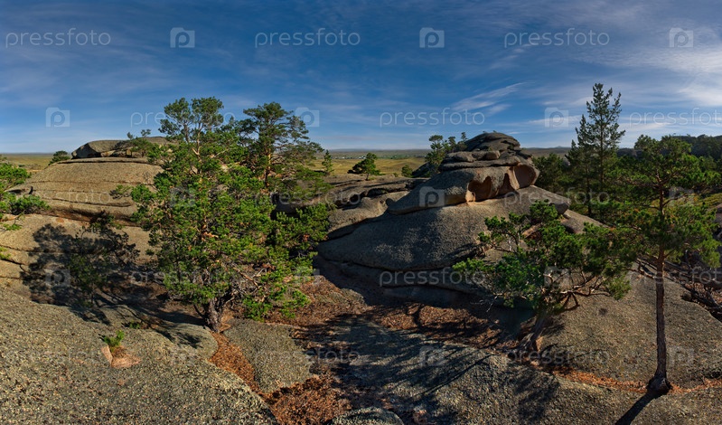Восточный Казахстан. Живописный вид на каменные останцы горного природного парка Баянаул, расположенного посреди бескрайних степей
