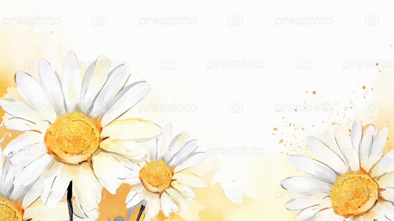 Ромашка на белом фоне в технике акварели с копировальным пространством