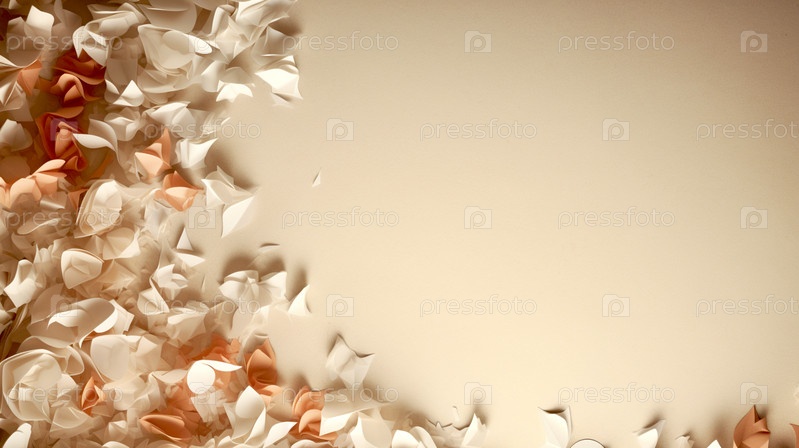Фон с копировальным пространством на бежевом фоне с кусочками белой и бежевой бумаги