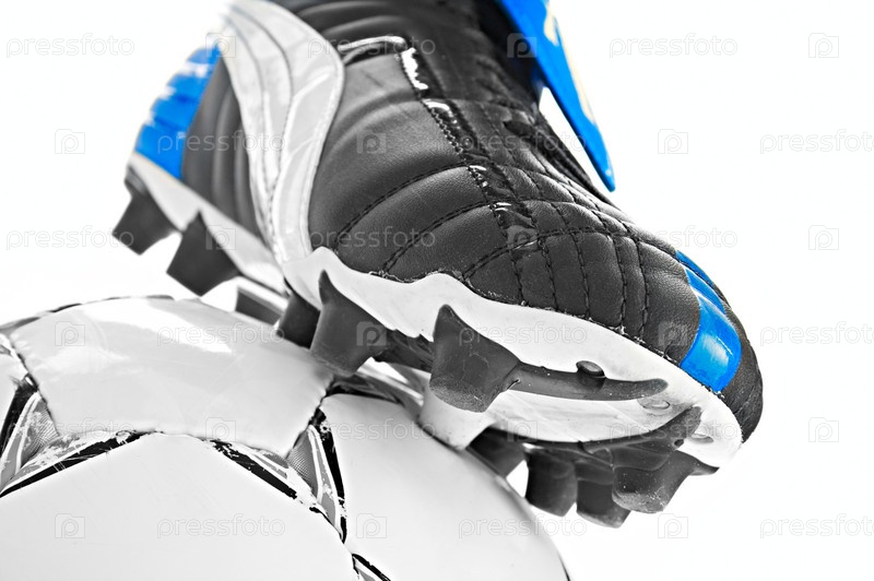 Футбольная обувь и мяч изолированы на белом фоне