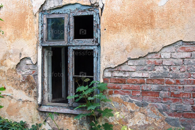 Разбитое окно в заброшенном доме