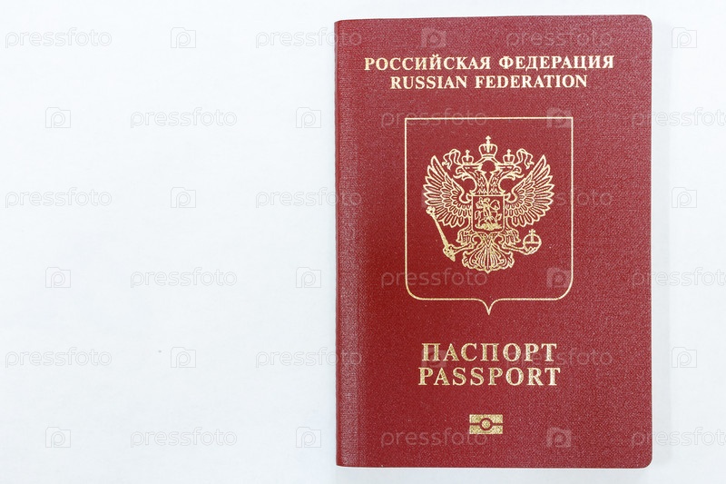 Загранпаспорт гражданина российской федерации на столе на белом фоне