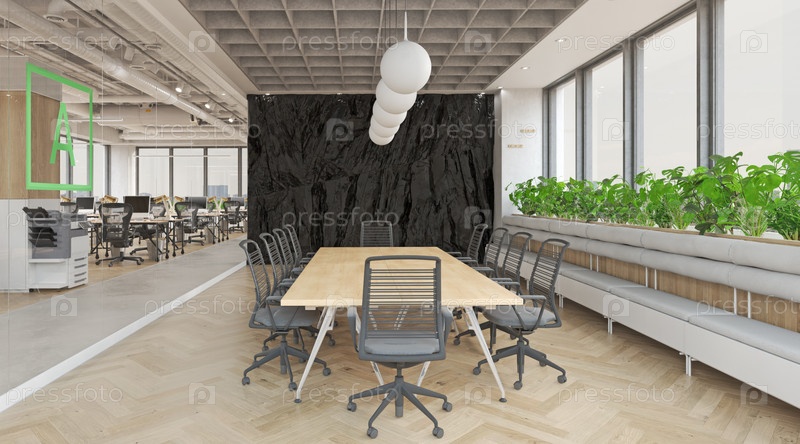 Современный офисный интерьер с элементами рока. 3D-рендеринг