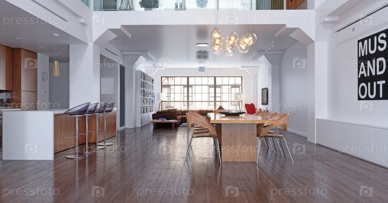 3D иллюстрация интерьера современной квартиры