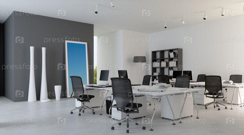 3D-интерьер светлого открытого офисного пространства. рендеринг концептуального дизайна