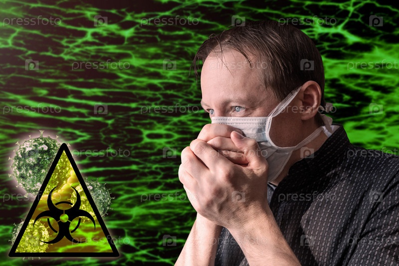 Понятие бактериологической опасности. Защита от гриппа и вирусов. Мужчина в медицинской маске. Коронавирус, Грипп