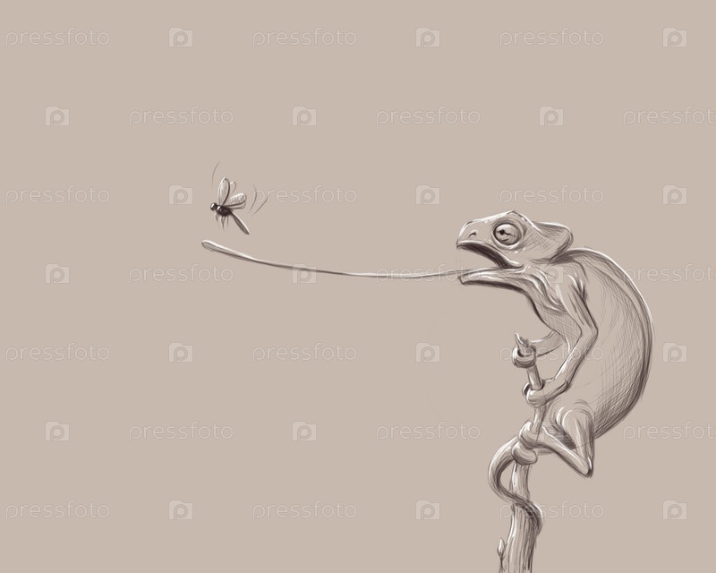 Рисунок хамелеон охотится