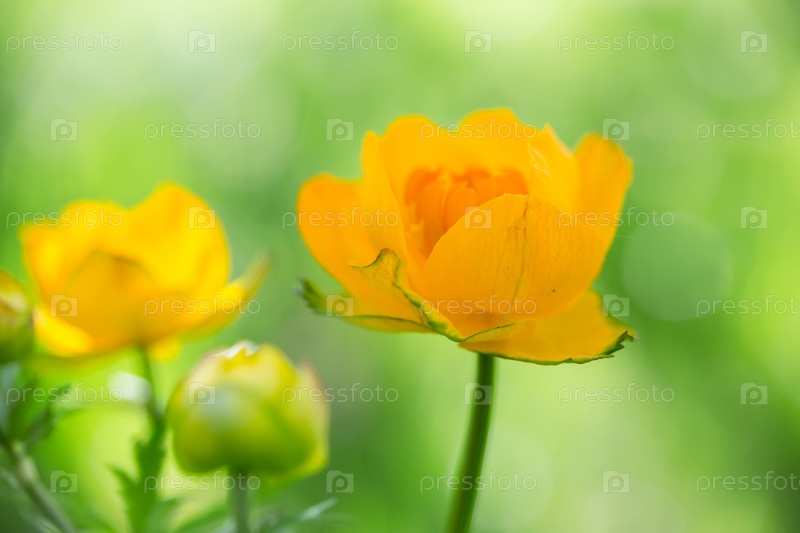 Купальница на зеленом фоне