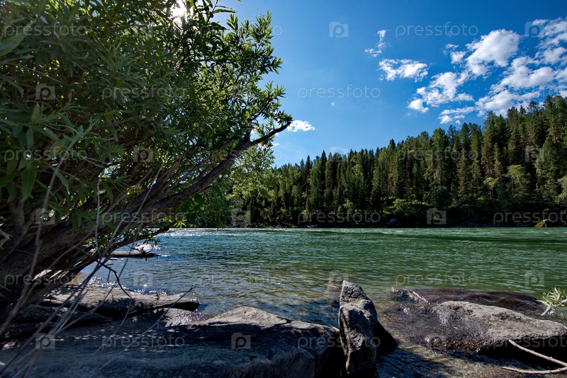 Россия. горный Алтай. Знаменитые «Катунские бани» — одно из самых любимых мест для купания и отдыха жителей Горного Алтая и туристов на реке Катунь