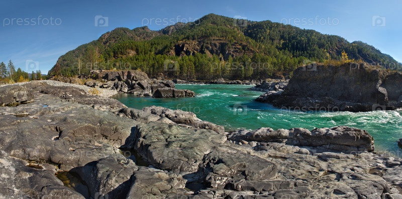 Россия. горный Алтай. Знаменитые «Катунские бани» — одно из самых любимых мест для купания и отдыха жителей Горного Алтая и туристов на реке Катунь