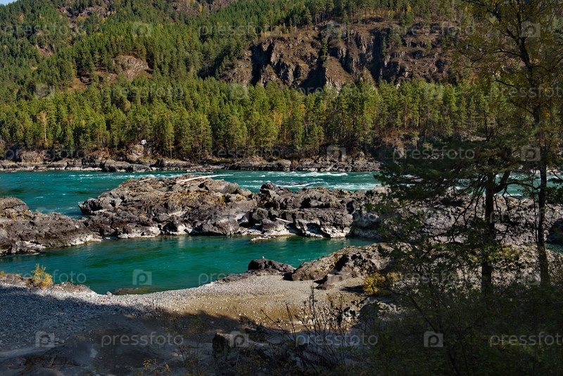 Россия. горный Алтай. Знаменитые «Катунские бани» — одно из самых любимых мест для купания и отдыха жителей Горного Алтая и туристов на реке Катунь
