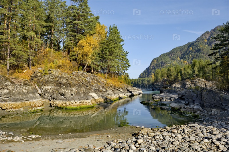 Россия. горный Алтай. Знаменитые «Катунские бани» — одно из самых любимых мест для купания и отдыха жителей Горного Алтая и туристов на реке Катунь