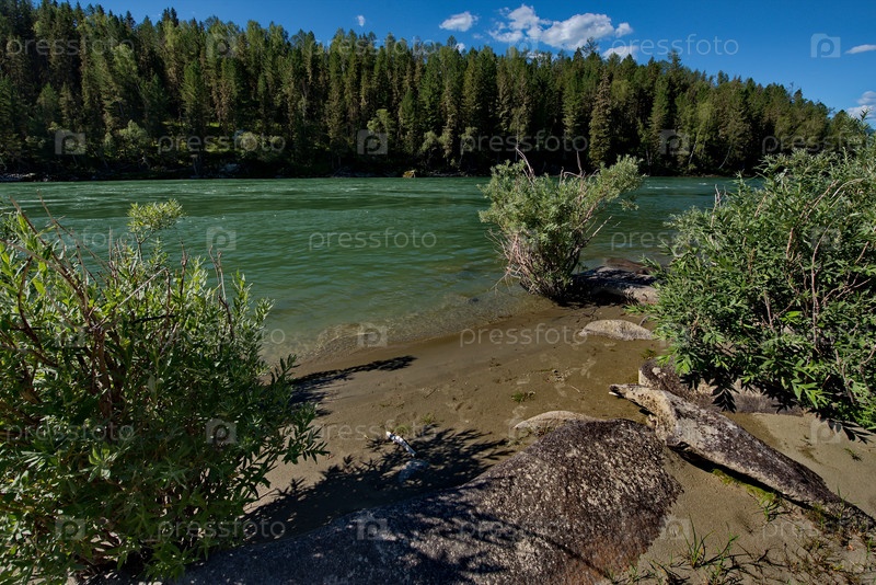Россия. горный Алтай. Знаменитые «Катунские бани» — одно из самых любимых мест для купания и отдыха жителей Горного Алтая и туристов на реке Катунь